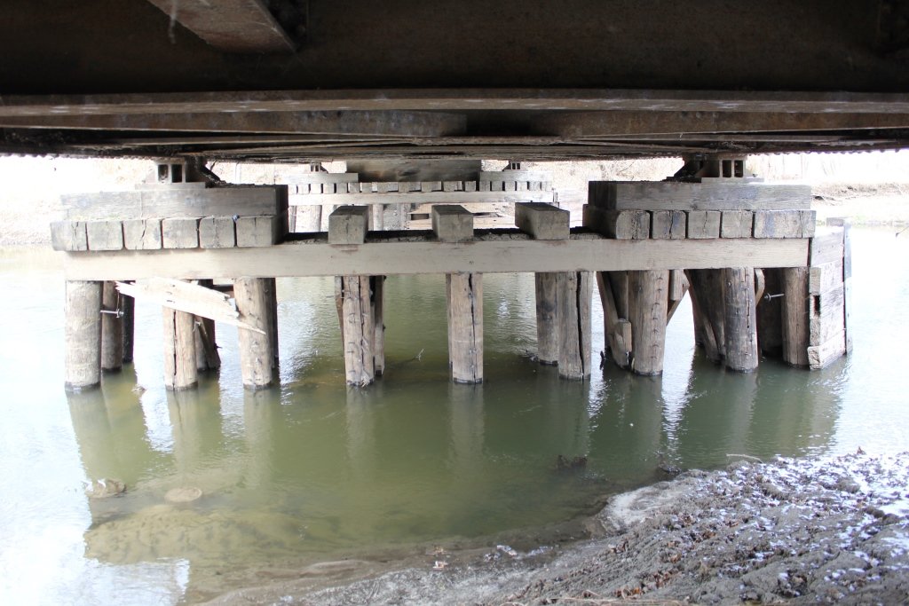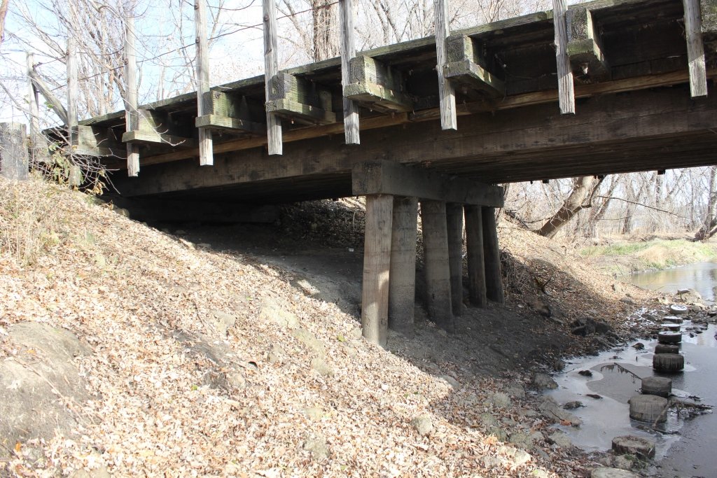 Built in 1957, the bridge was built reusing two 50-foot type "C3" girder spans, set onto timber piles and approached by trestles. It is unknown where these spans came from, but they were likely fabricated around 1900.