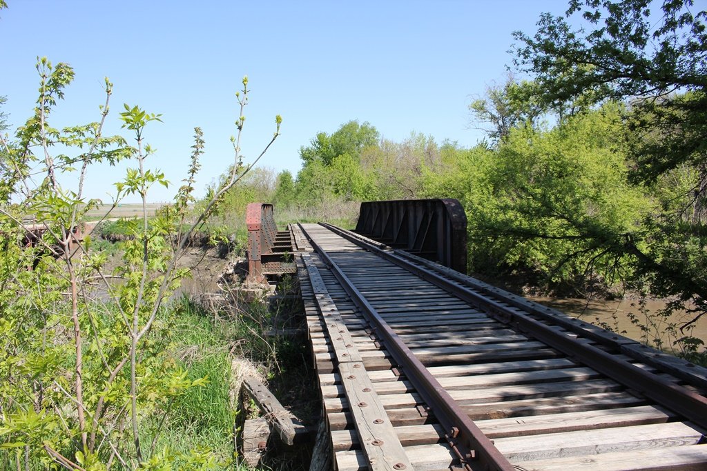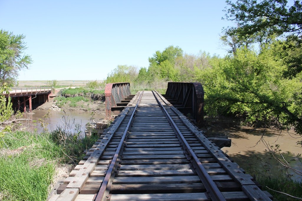 This standard through girder bridge crosses Maple Creek north of Nickerson.