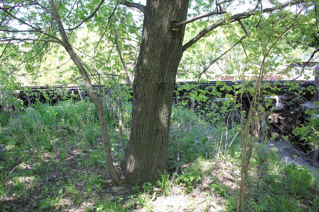 Built in 1924, the bridge contains a single through girder span, with trestle approaches.