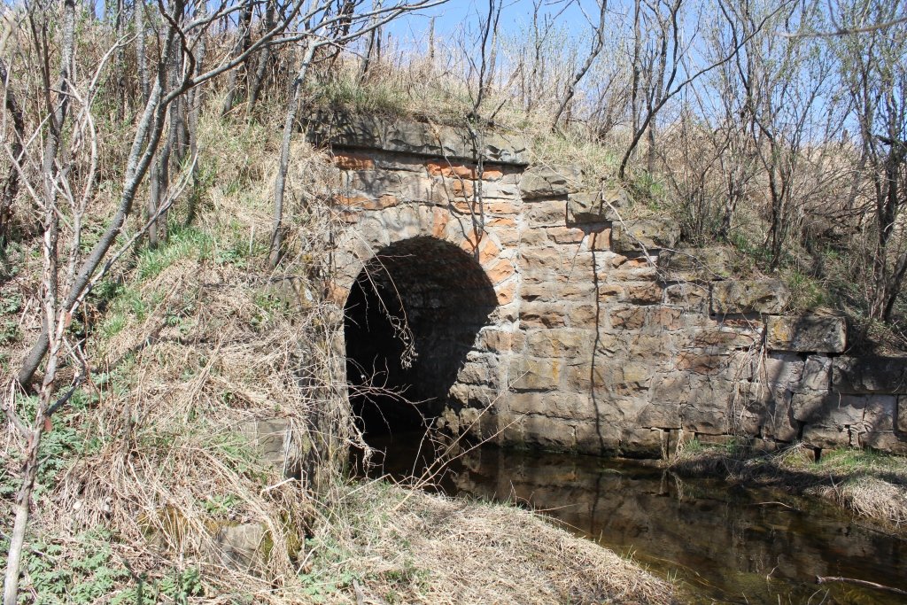Located between Milaca and Ogilvie, this small stone arch culvert crosses an unnamed creek parallel to Highway 23.
