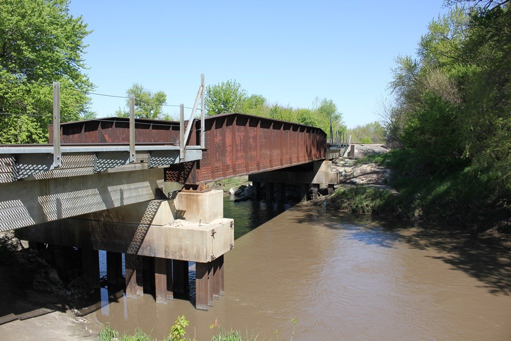 This standard through girder bridge crosses Maple Creek north of Nickerson.
