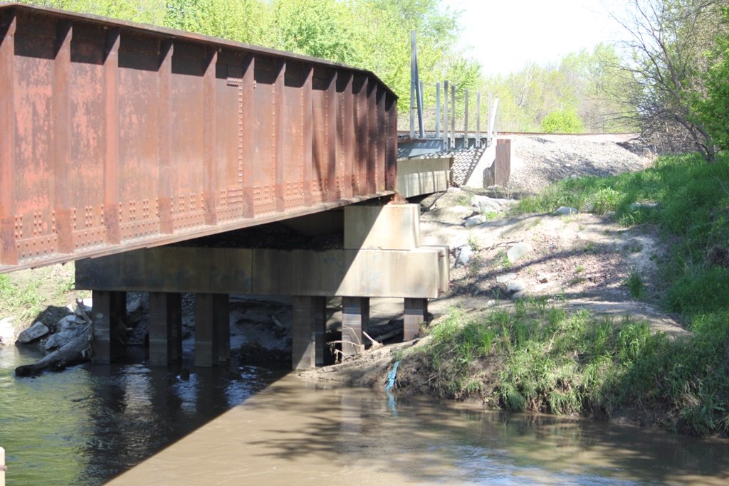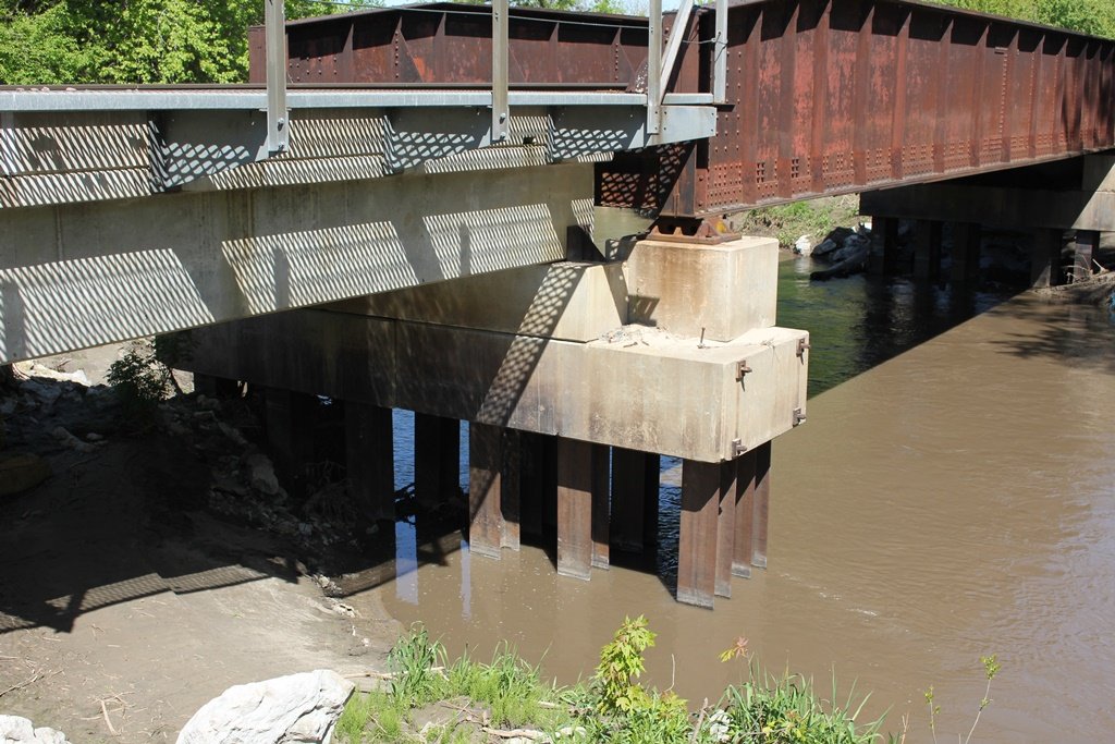 Originally, it appears that the bridge was set onto wooden substructures. However, these were replaced when the original trestle approaches were updated.