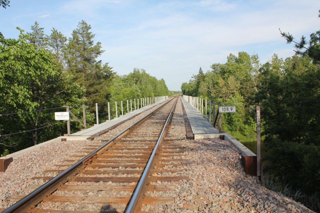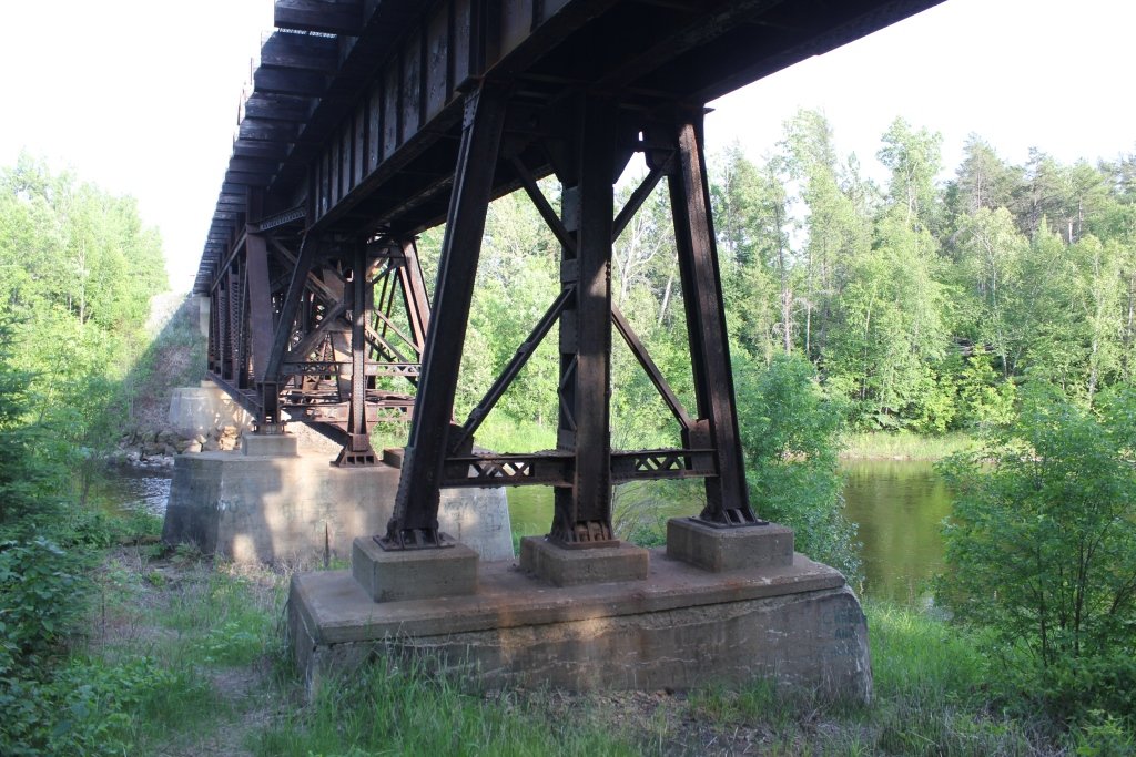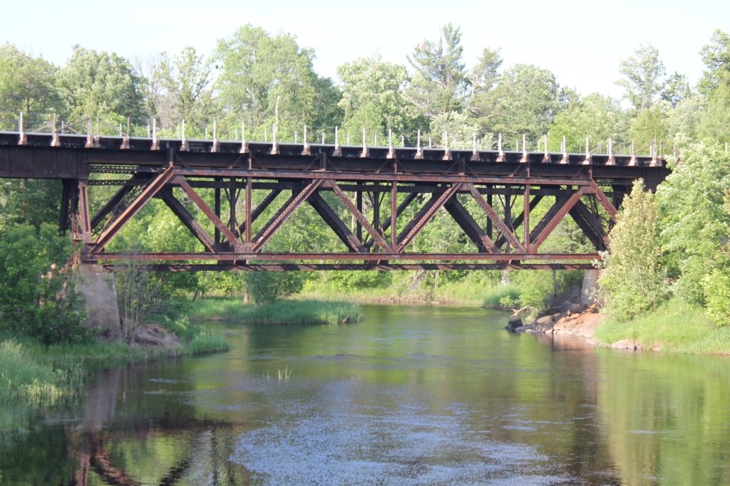 Located just east of Grand Rapids, this deck truss bridge crosses the Prairie River.