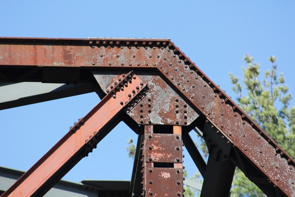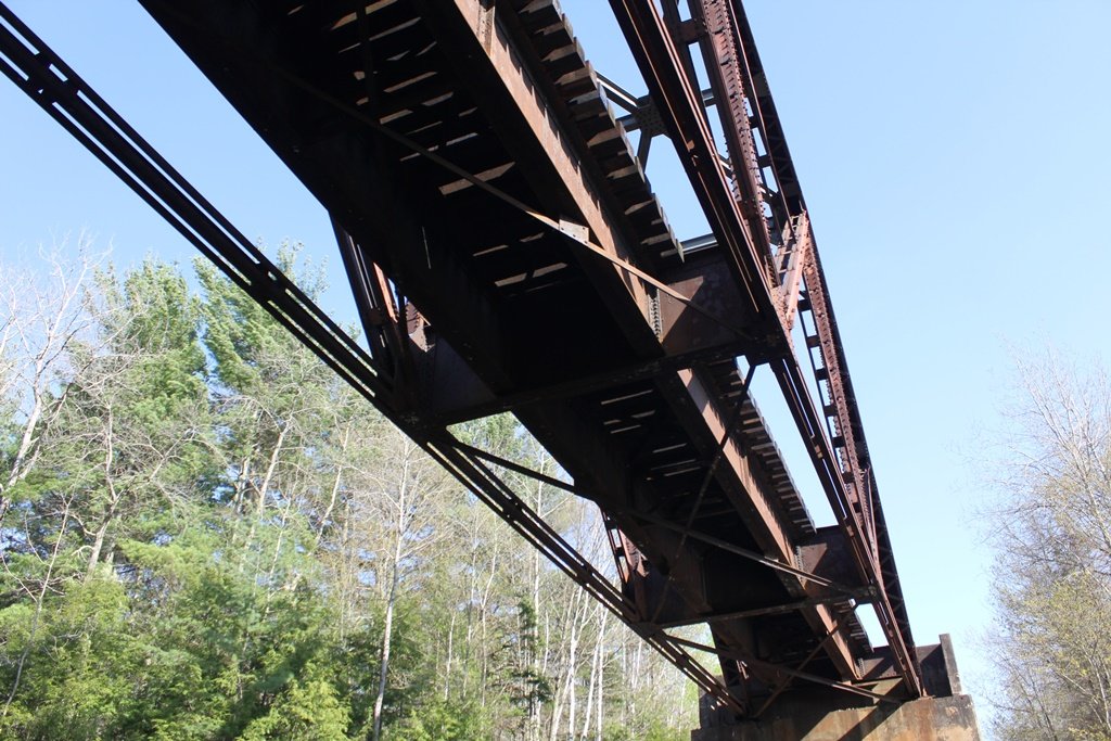 The bridge contains a single, 4 panel, riveted Pratt Through Truss. This truss have been moderately reconstructed, although it still bears many of the original components.