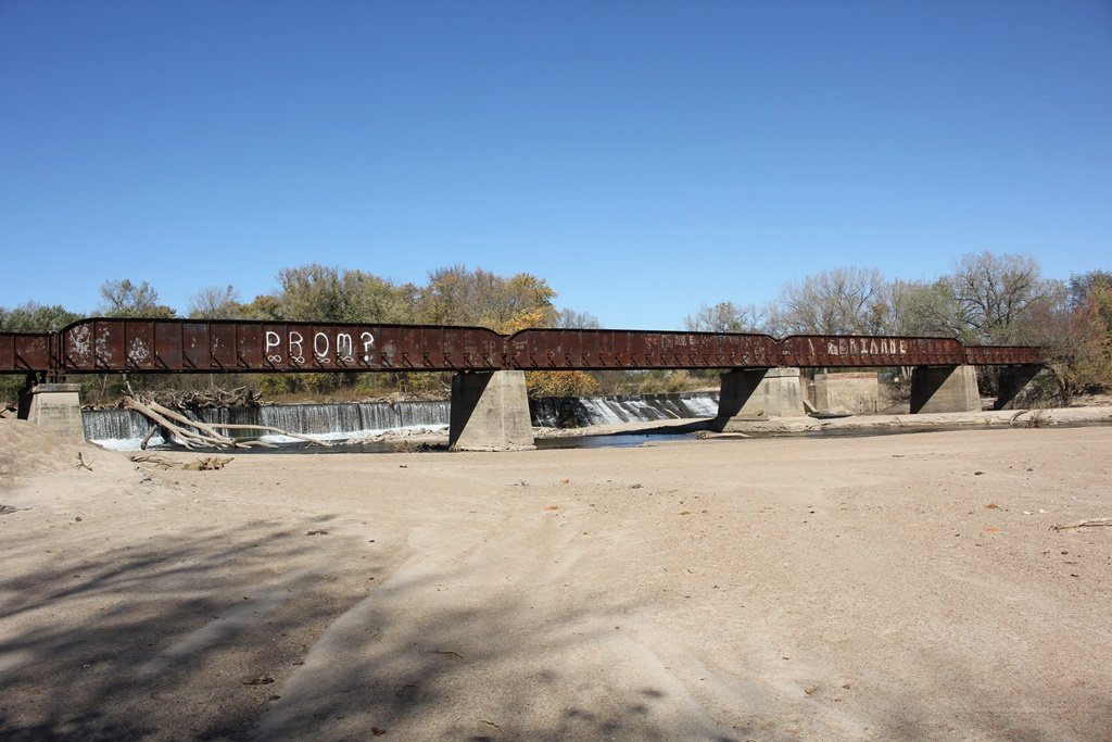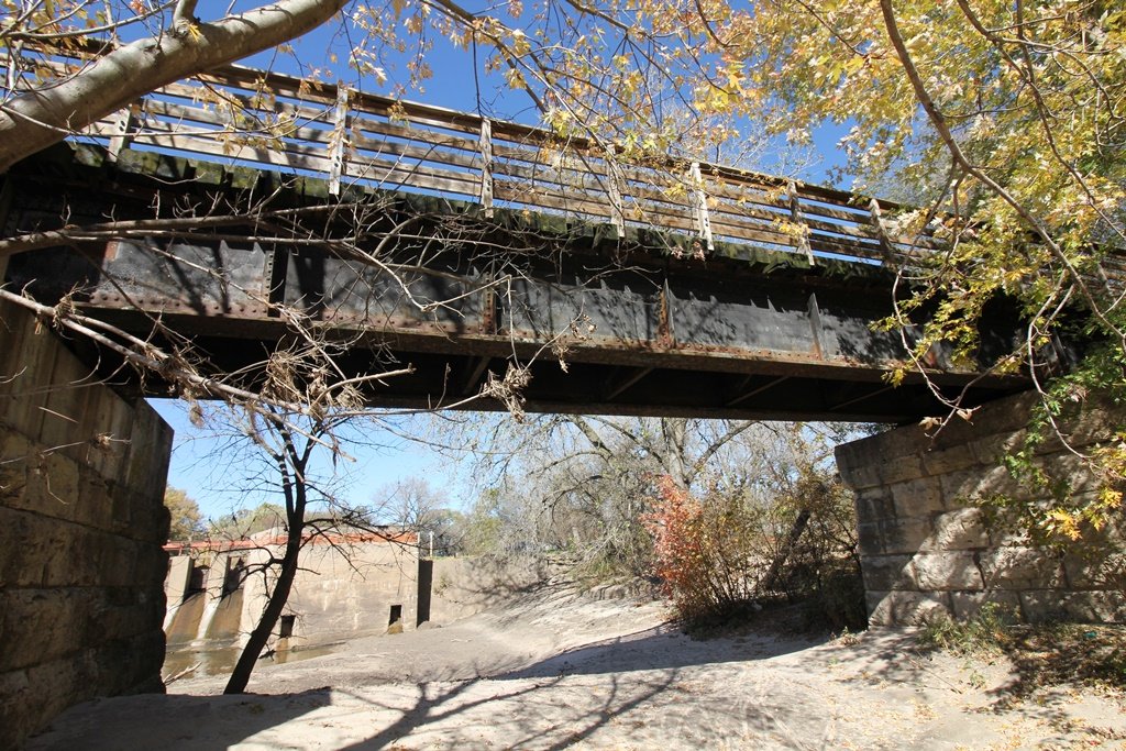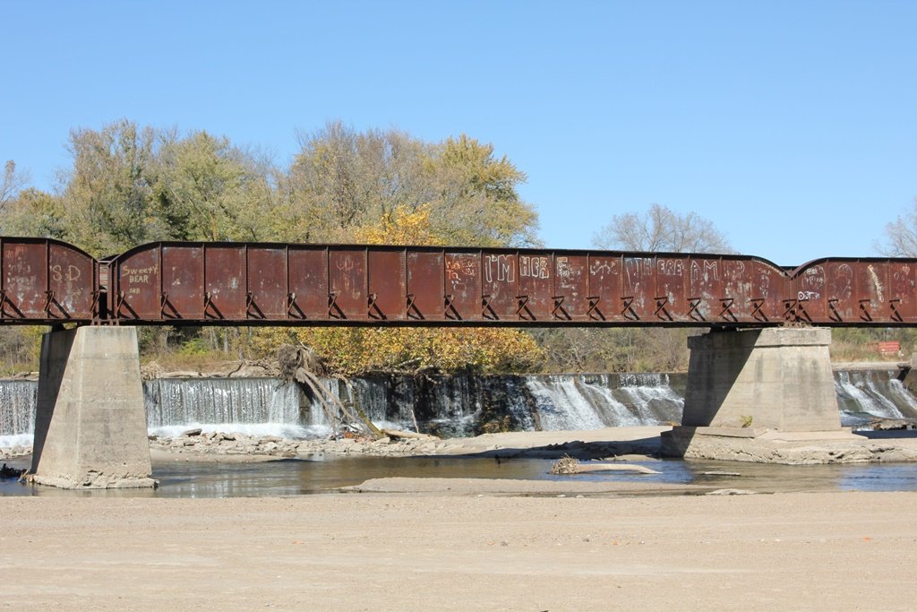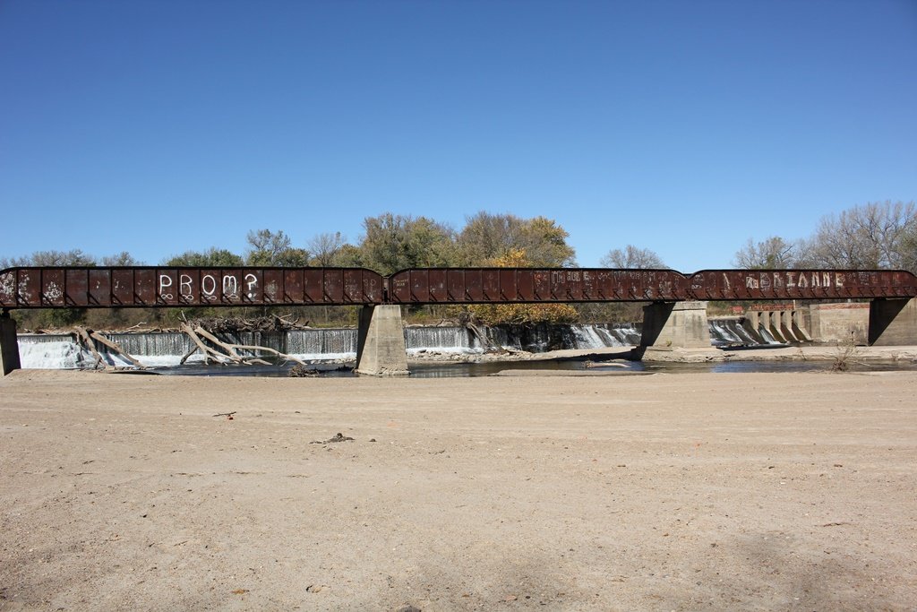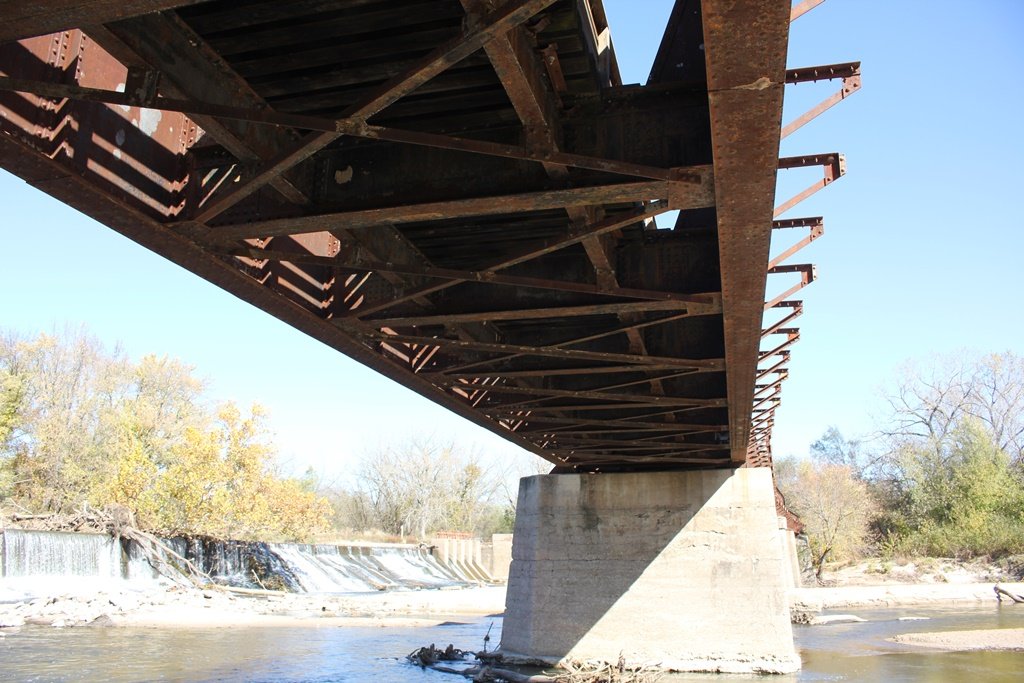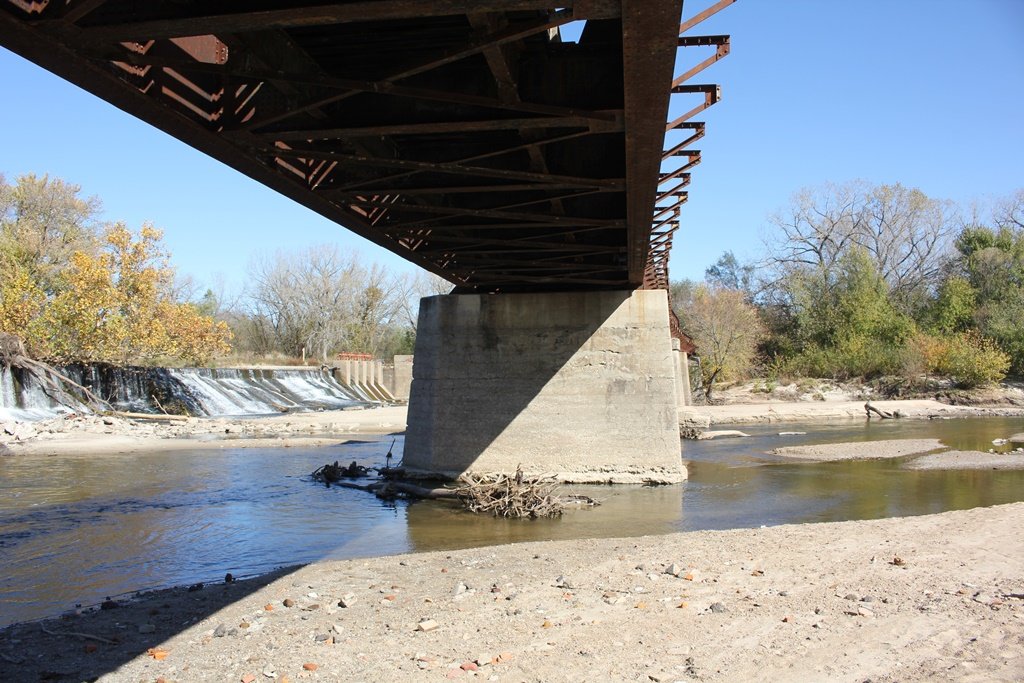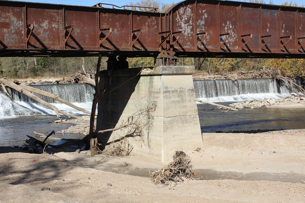 Located in the town of Fairbury, this large girder bridge crosses the Little Blue River just below the dam.