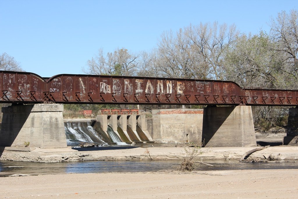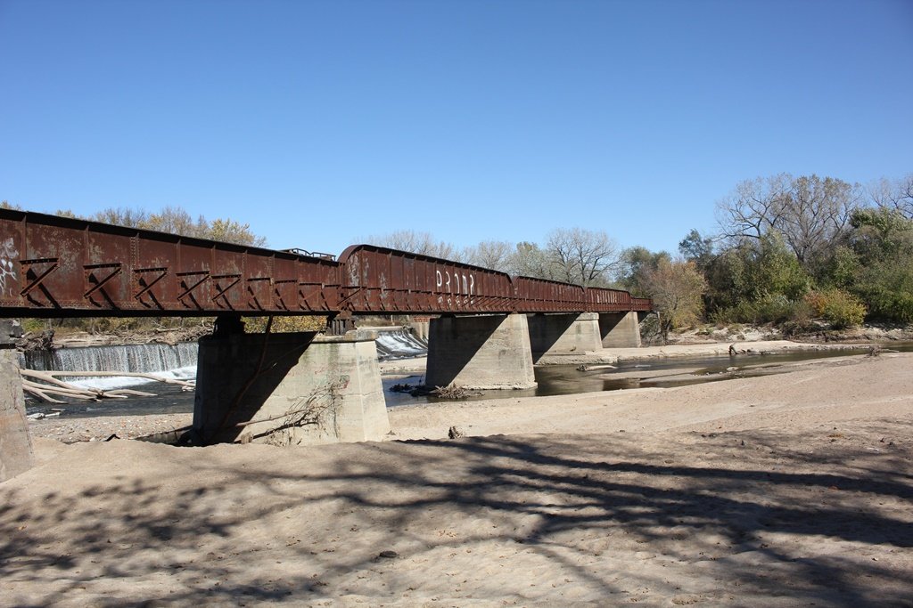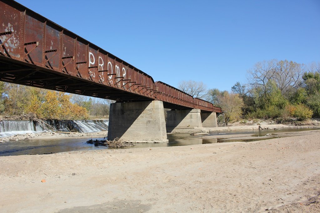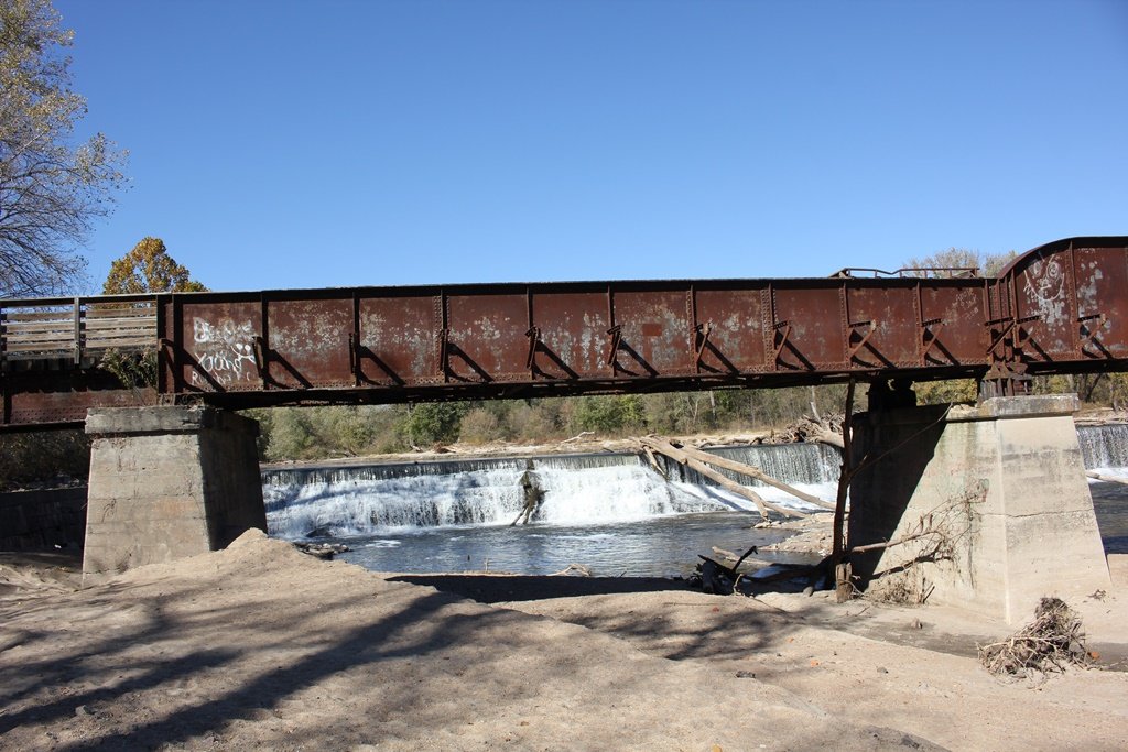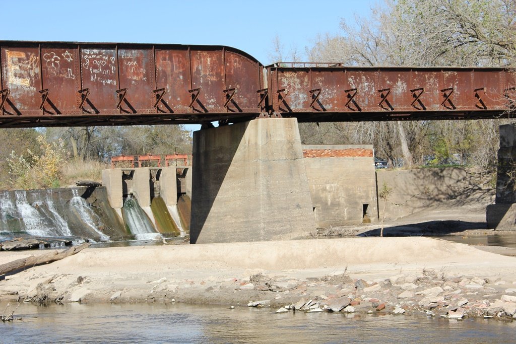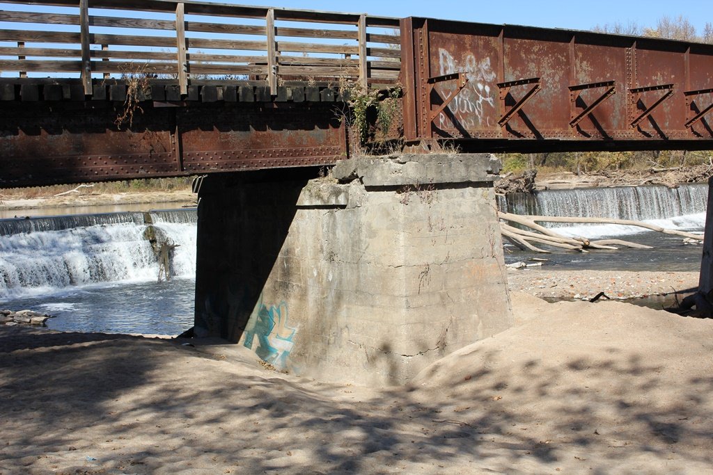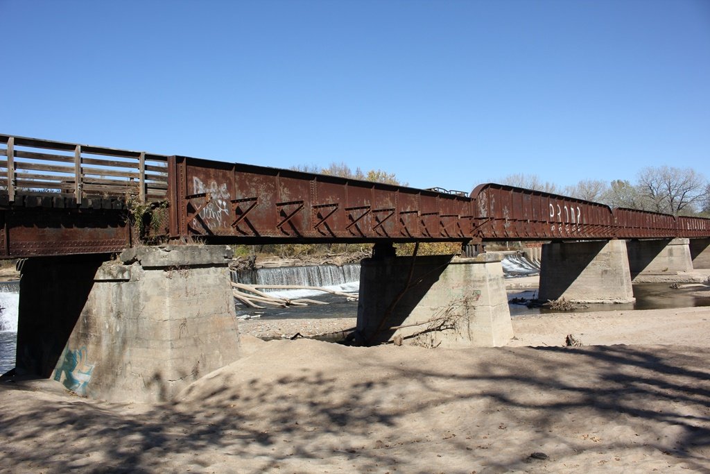 Located in the town of Fairbury, this large girder bridge crosses the Little Blue River just below the dam.