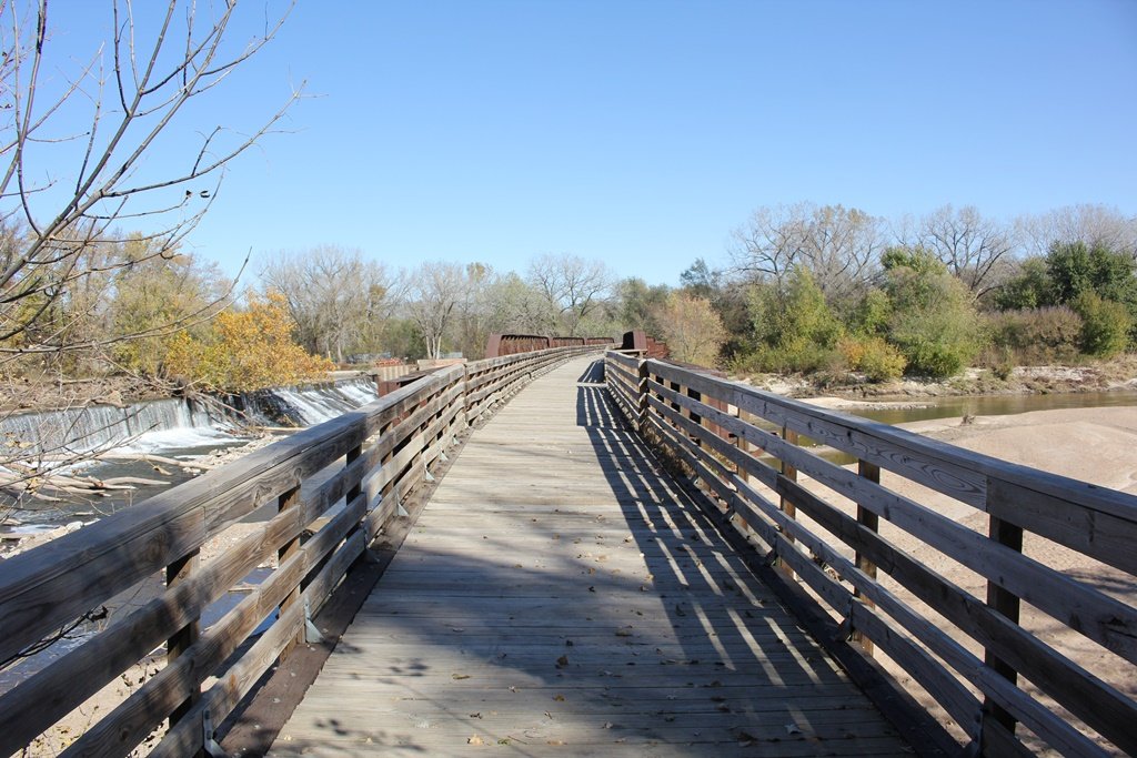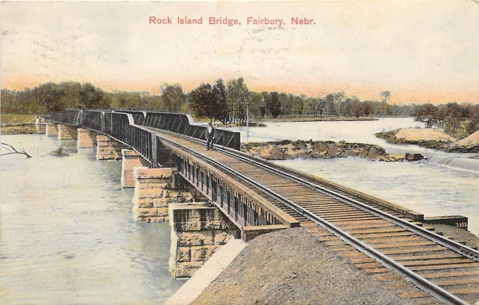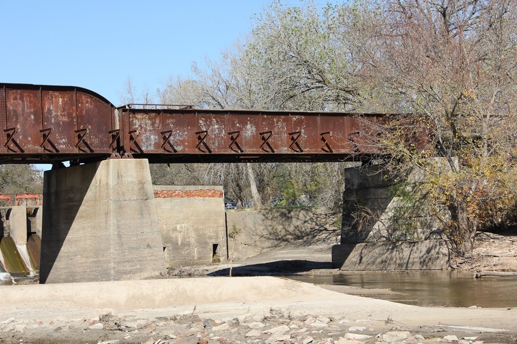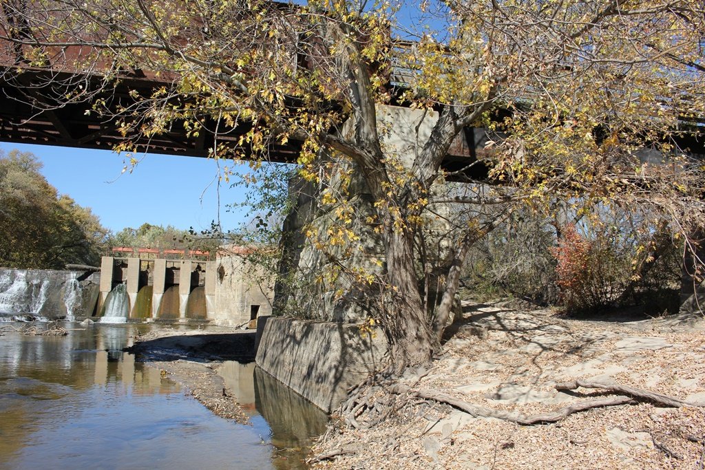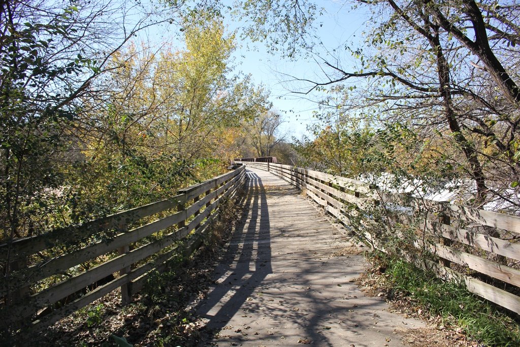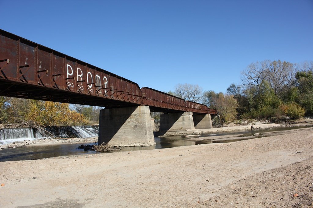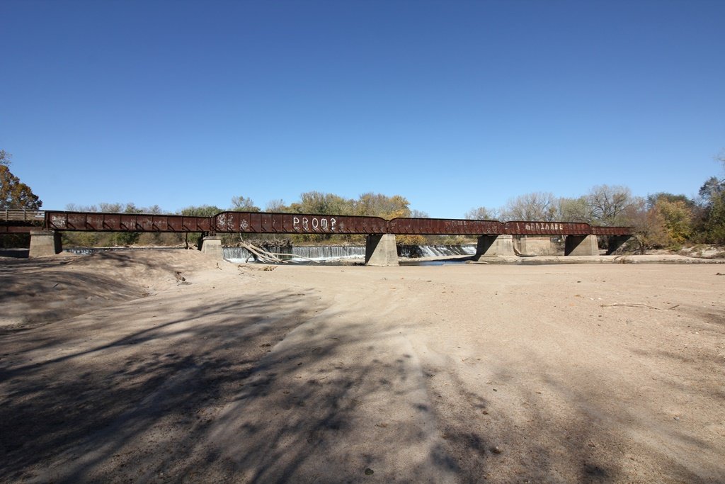 Located in the town of Fairbury, this large girder bridge crosses the Little Blue River just below the dam.
