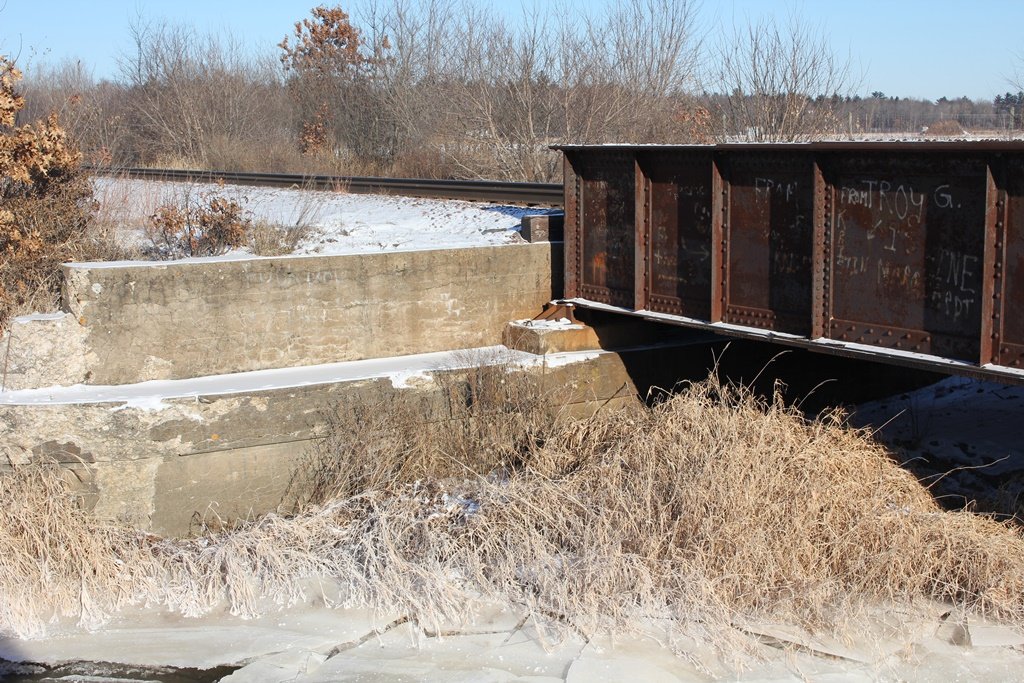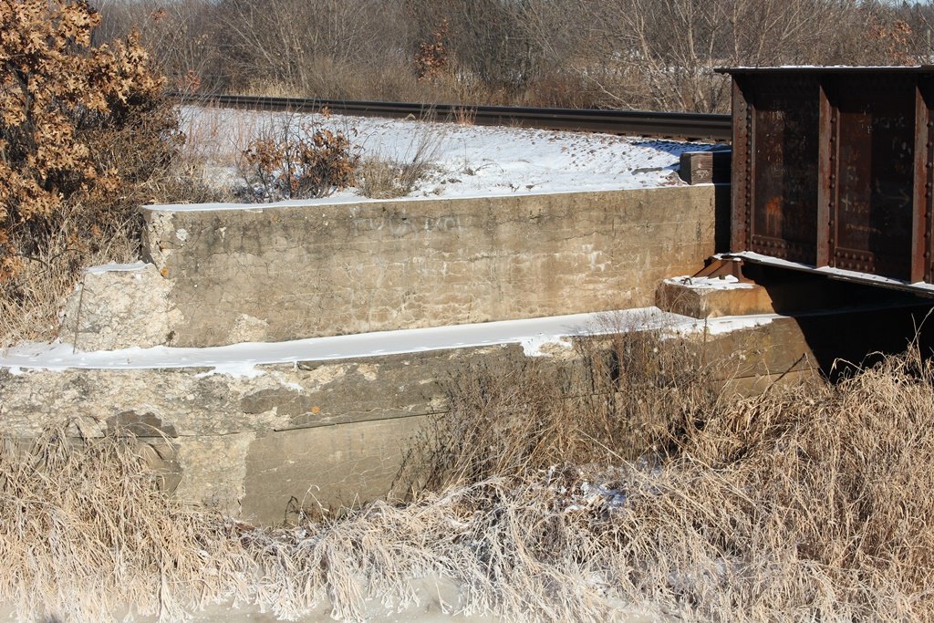 Currently, the bridge is set onto concrete substructures. Overall, the bridge appears to be in good condition. The former eastbound span was removed in approximately 1970.