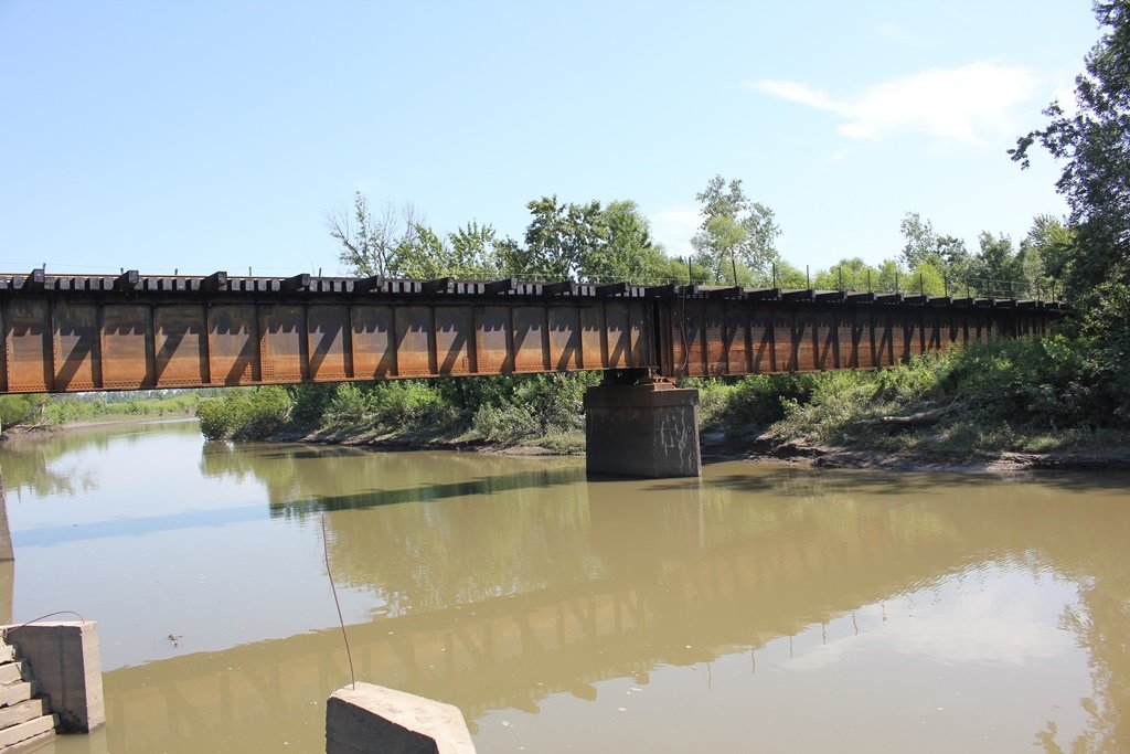 This deck girder bridge crosses Sni-A-Bar Creek near Wellington, Missouri.